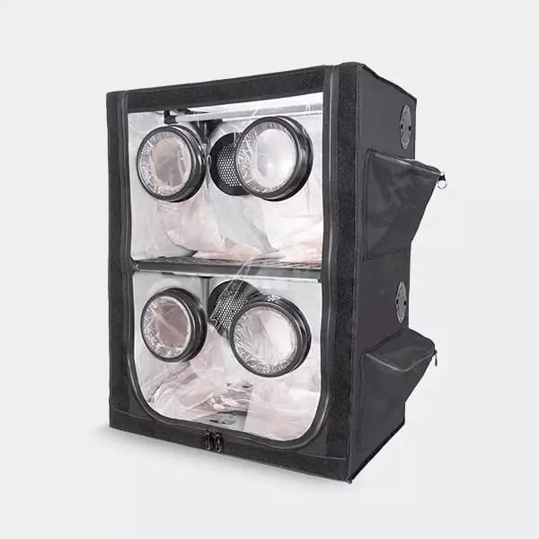 El armario de cultivo de setas está diseñado para crear un espacio cerrado, limpio y estable donde desarrollar setas en interior con mayor seguridad y control. Su formato compacto permite mantener las condiciones adecuadas de humedad y ventilación, facilitando el cultivo tanto para usuarios principiantes como avanzados.