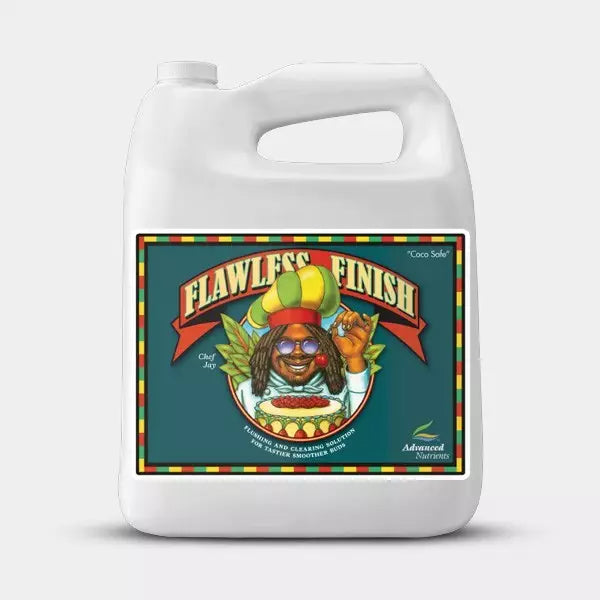 Advanced Nutrients Flawless Finish es un limpiador de raíces diseñado para usarse en las últimas semanas antes de la cosecha, ayudando a eliminar el exceso de sales acumuladas, minerales y residuos de fertilizantes que quedan en el sustrato y en las raíces tras semanas de abonado intenso. Su acción favorece un producto final más limpio, con un sabor y aroma más puros y una combustión más suave al reducir impurezas en los tejidos vegetales.
