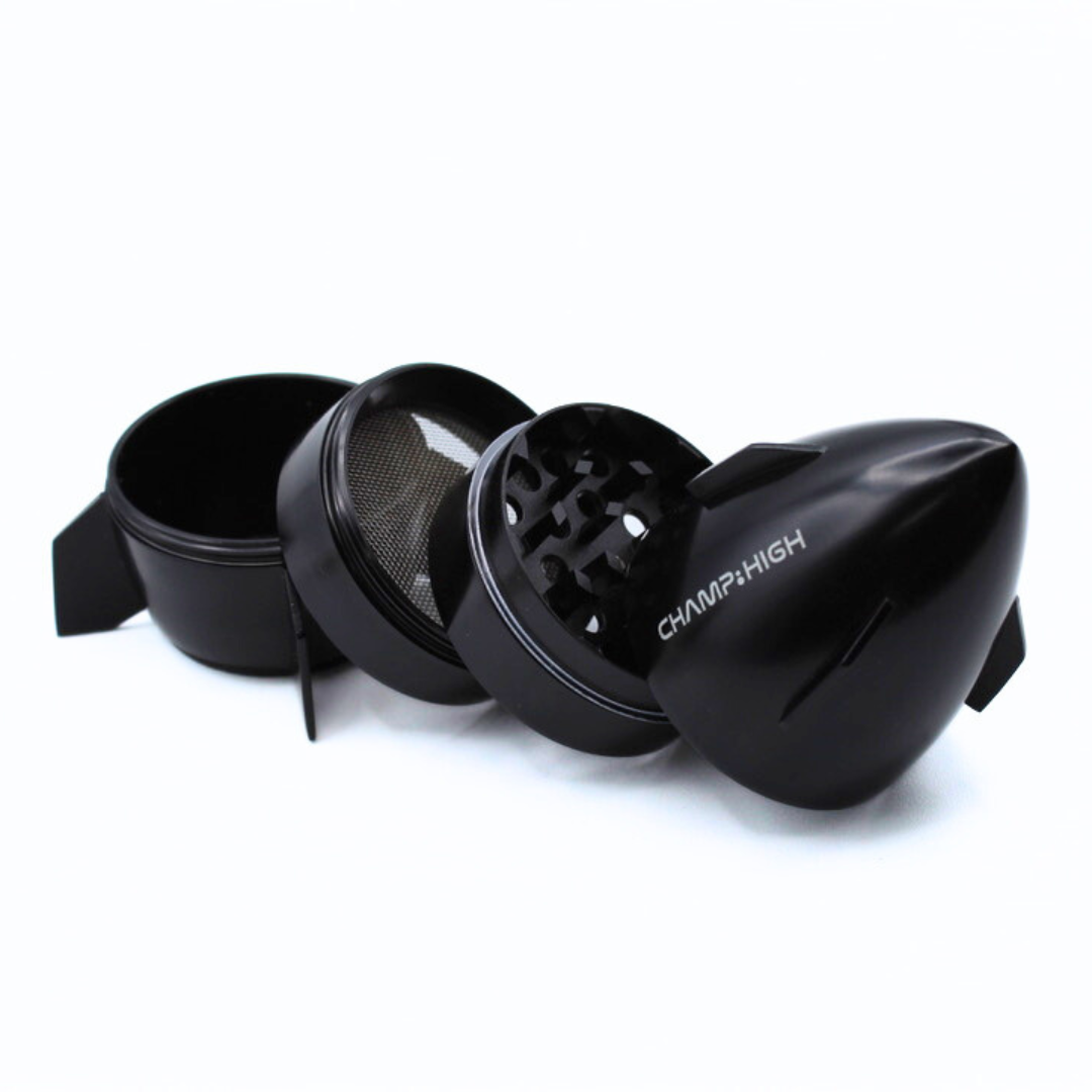 El Grinder Cohete combina un estilo original con un rendimiento sólido para quienes buscan un accesorio distinto sin perder eficacia. Su estructura metálica en forma de cohete aporta un toque único, mientras sus dientes tipo diamante garantizan una molienda fina y constante en cada uso.