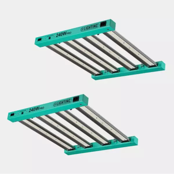 2 paneles LED regulables de 240W Pro GB Lighting para una cobertura uniforme.